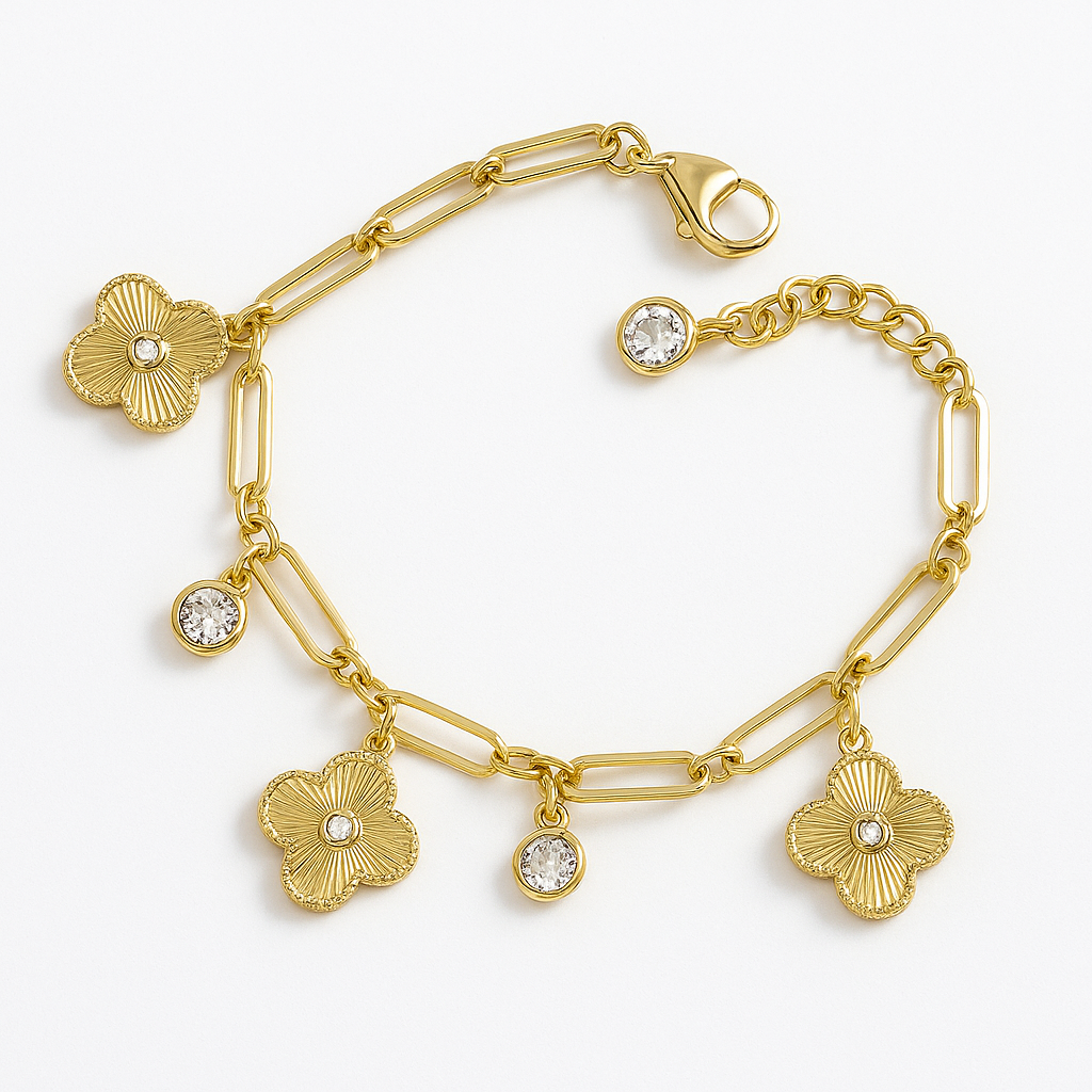 Çelik 3 Yonca Taşlı Bileklik